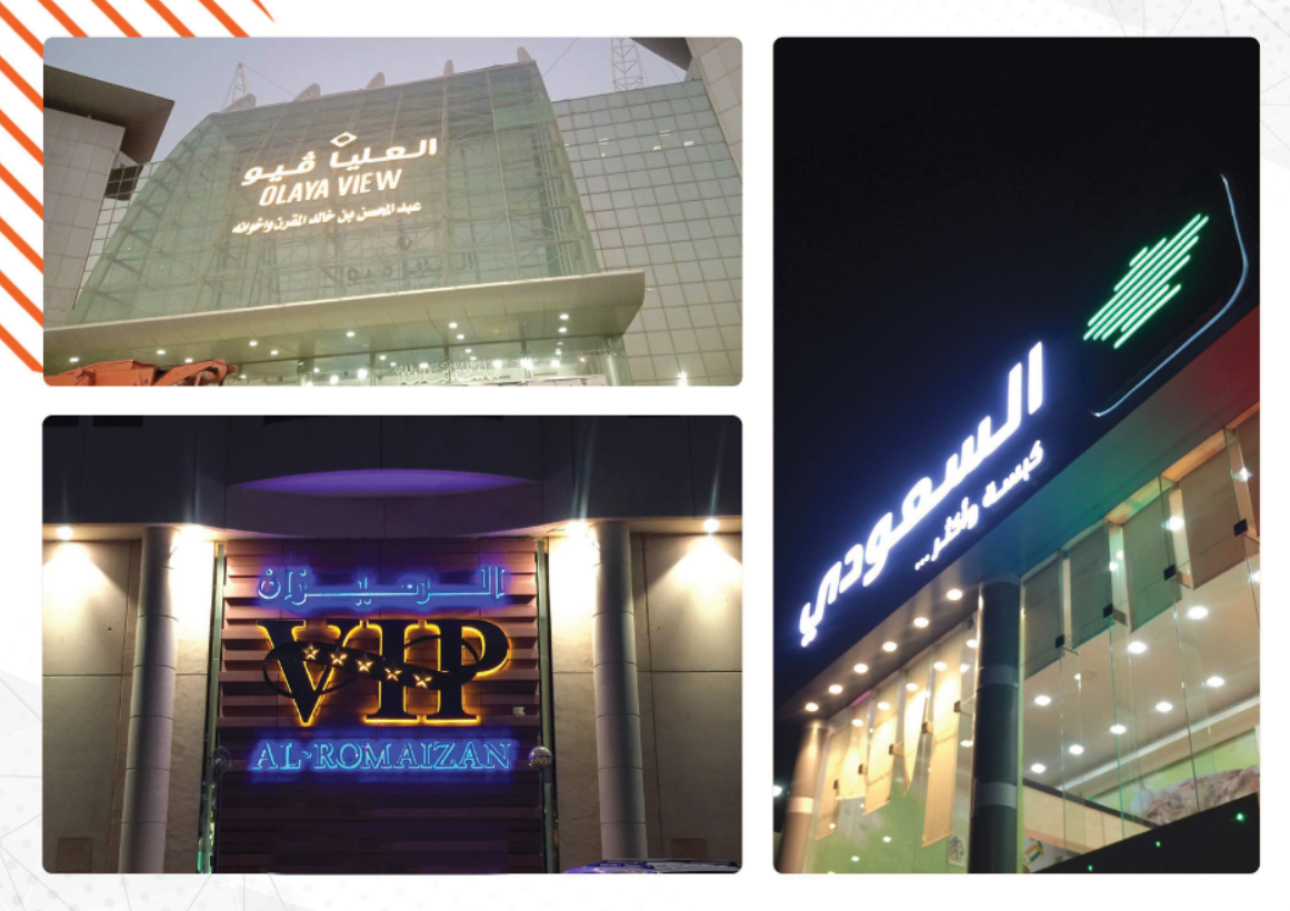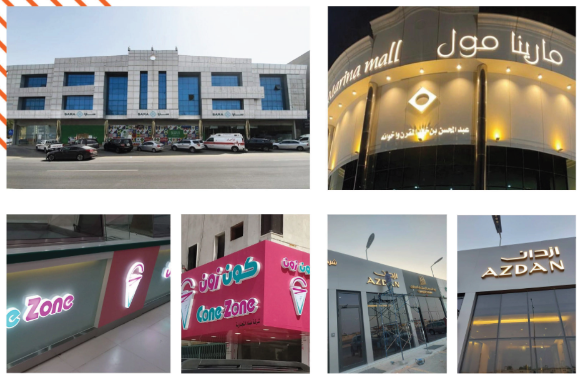 .كما تم تنفيذ اللوحات الخارجية الإعلانية والإرشادية بتصاميم عصرية وخامات مقاومة للعوامل الجوية، مع مراعاة الدقة في الطباعة والتنفيذ بما يضمن وضوح العلامة التجارية وجاذبيتها على مدار اليوم.